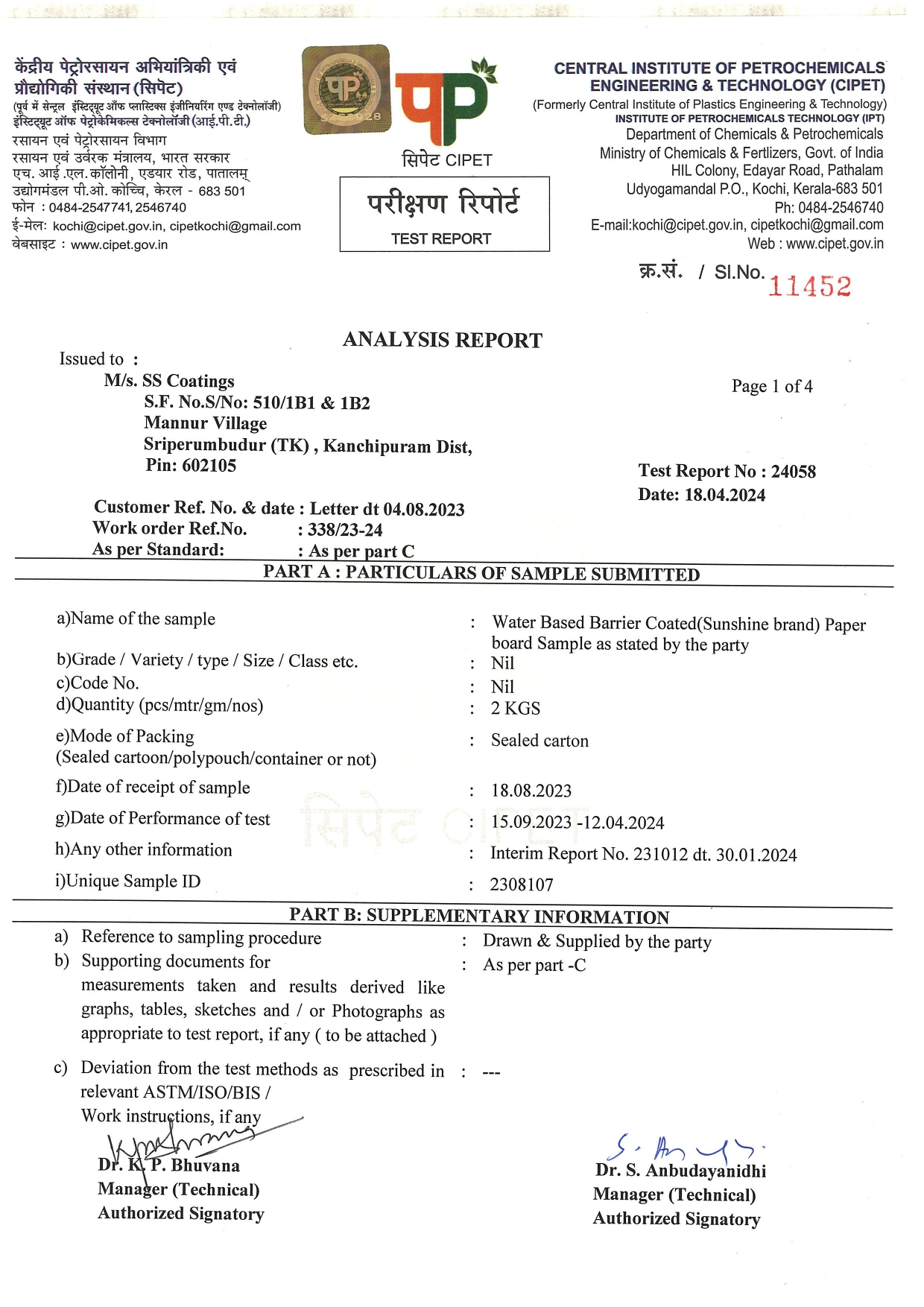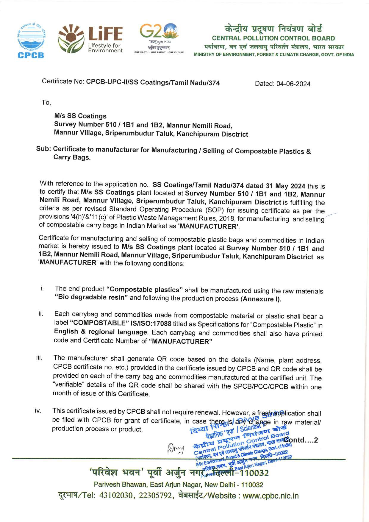 CPCB Certificate – SS Coatings