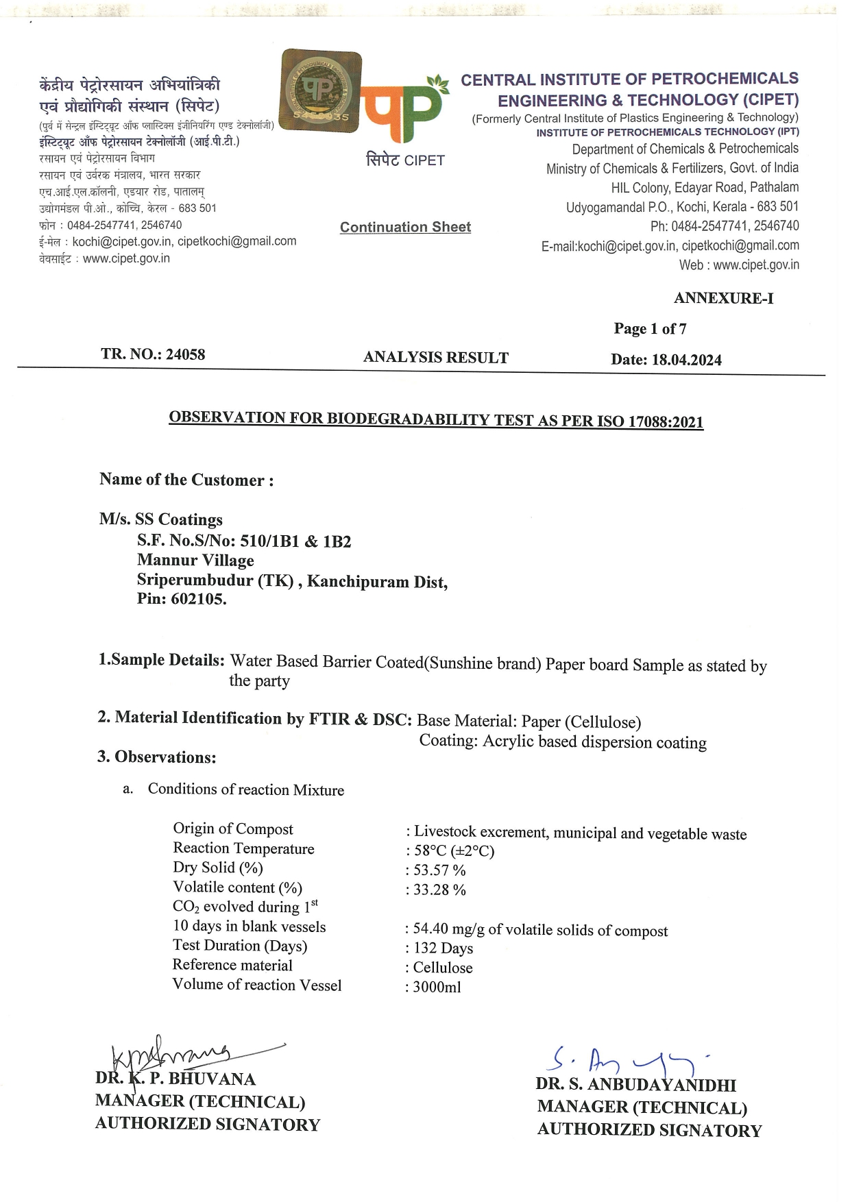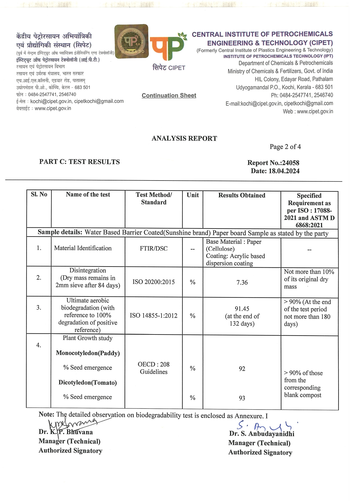 Certification Confirmation for Biodegradable Paper Quality and Coating