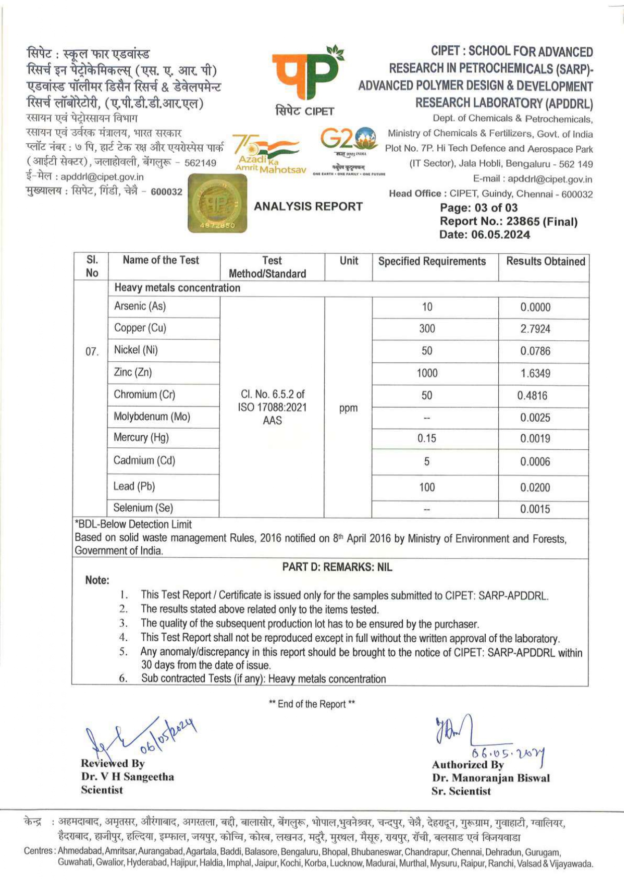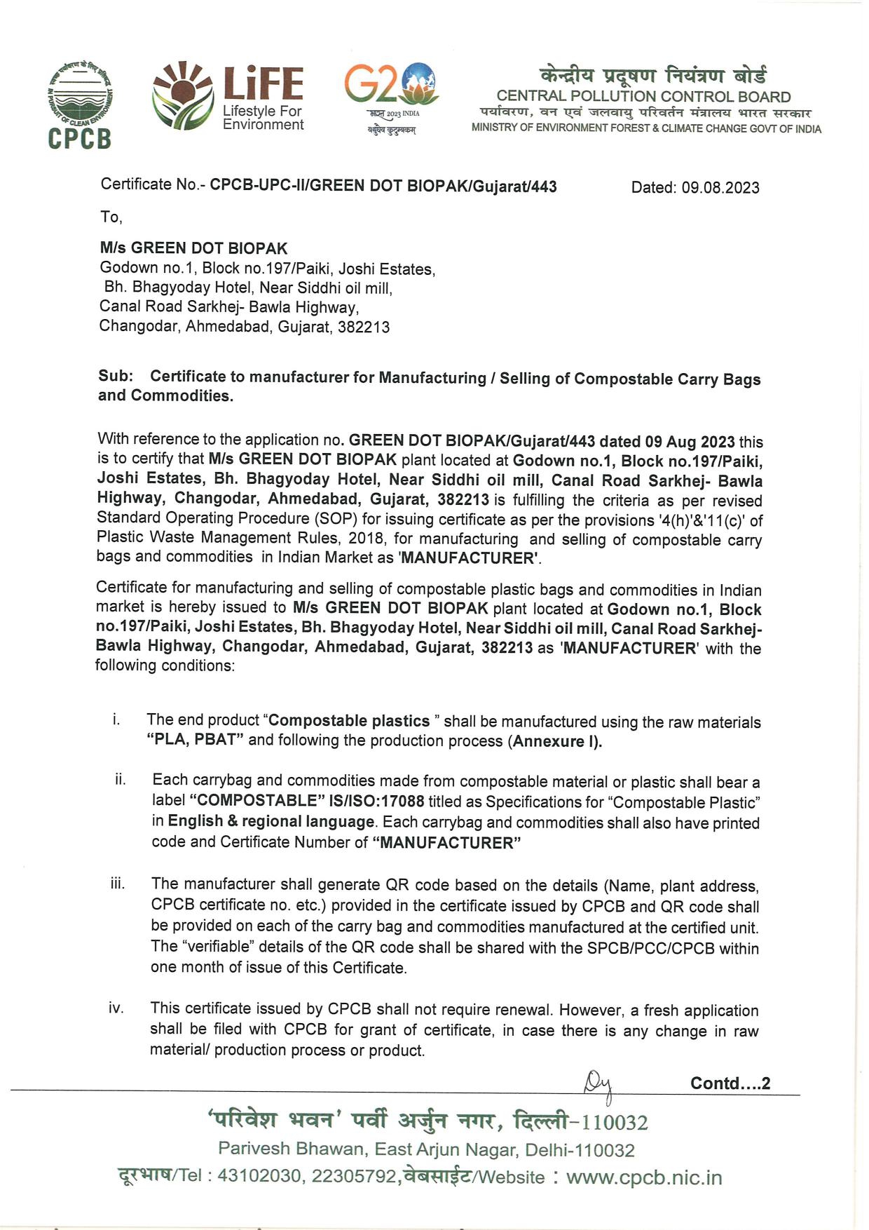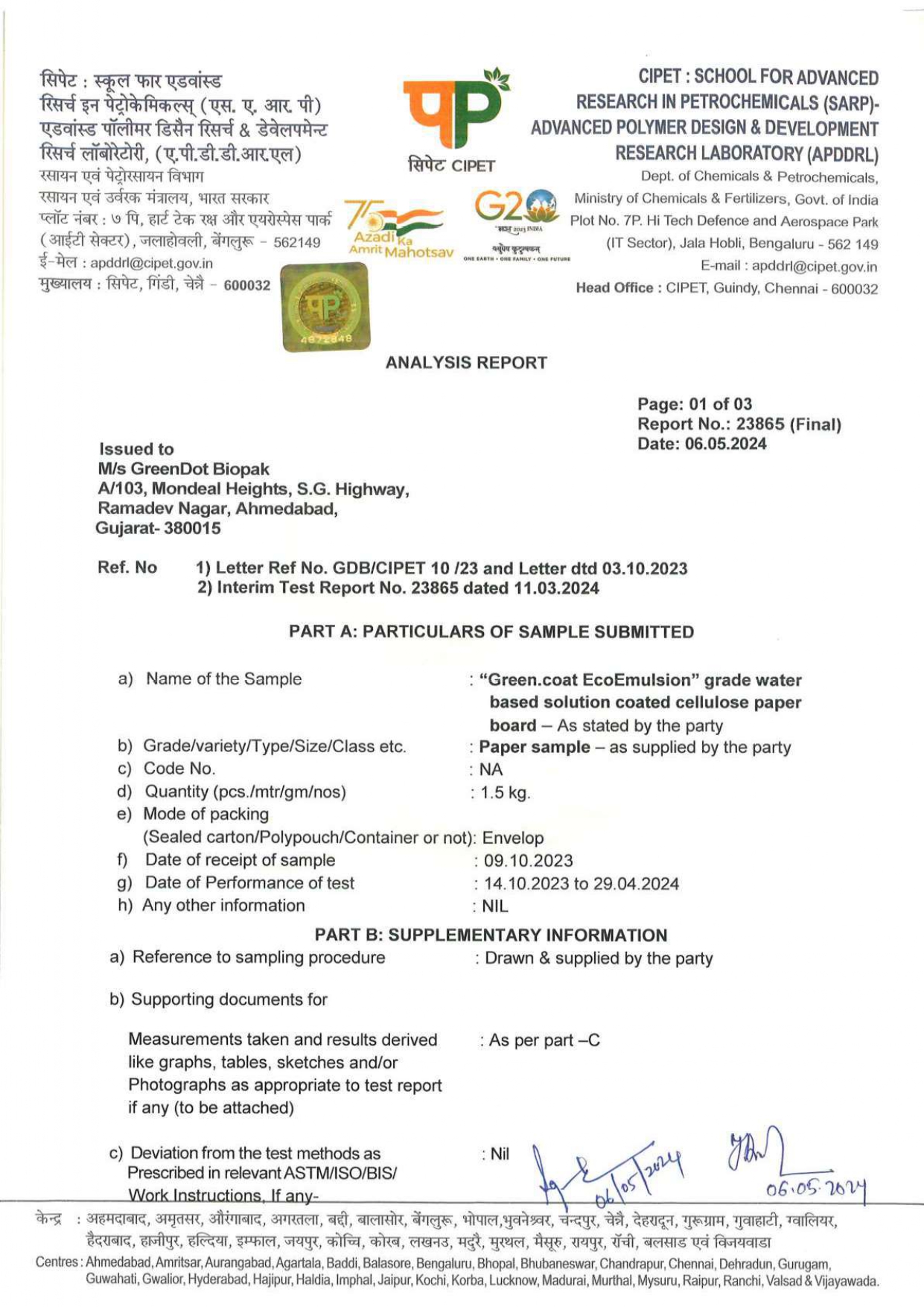 Certification Confirmation for Biodegradable Paper Quality and Coating